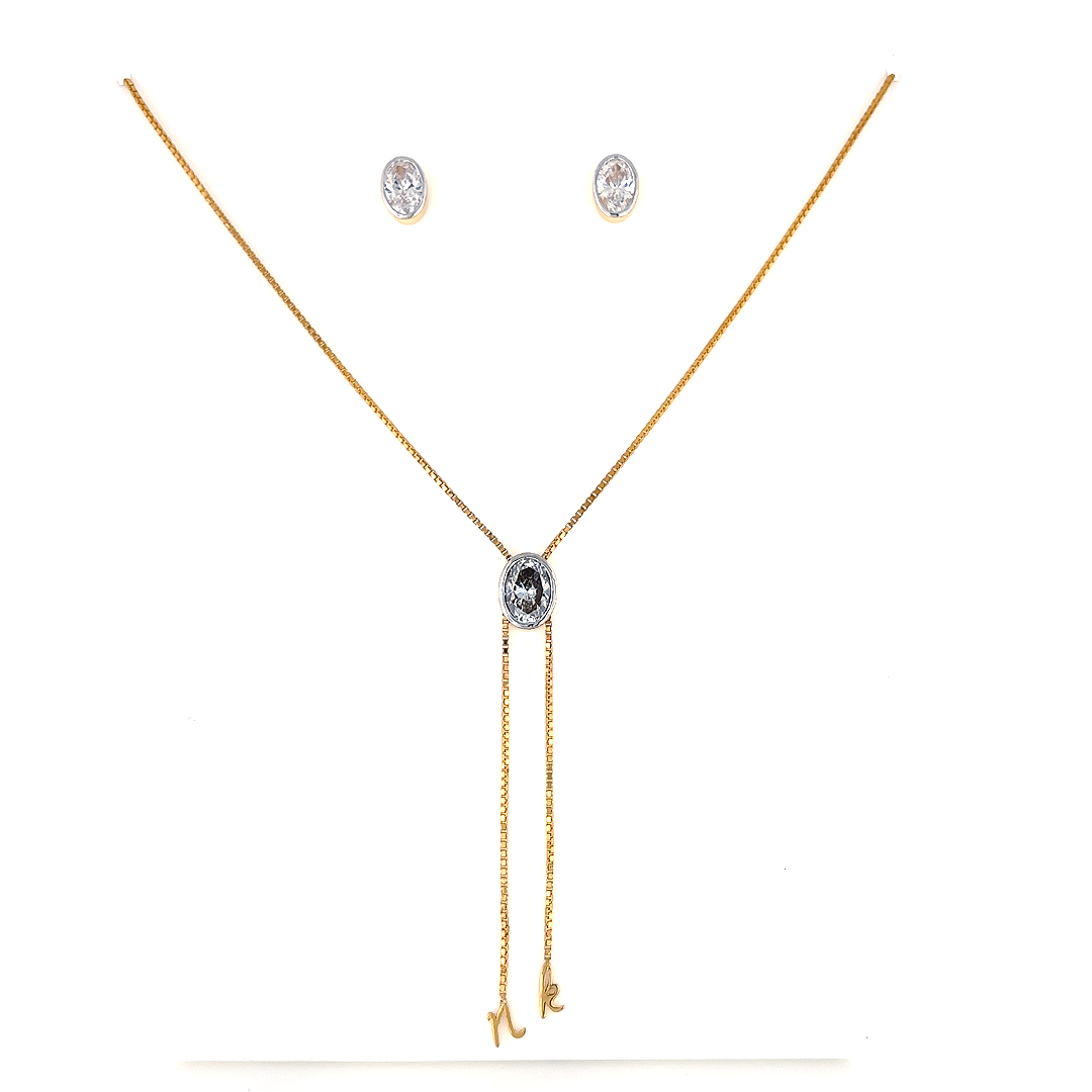 Initial Drop Lariat Pendant & Solitaire Stud Set