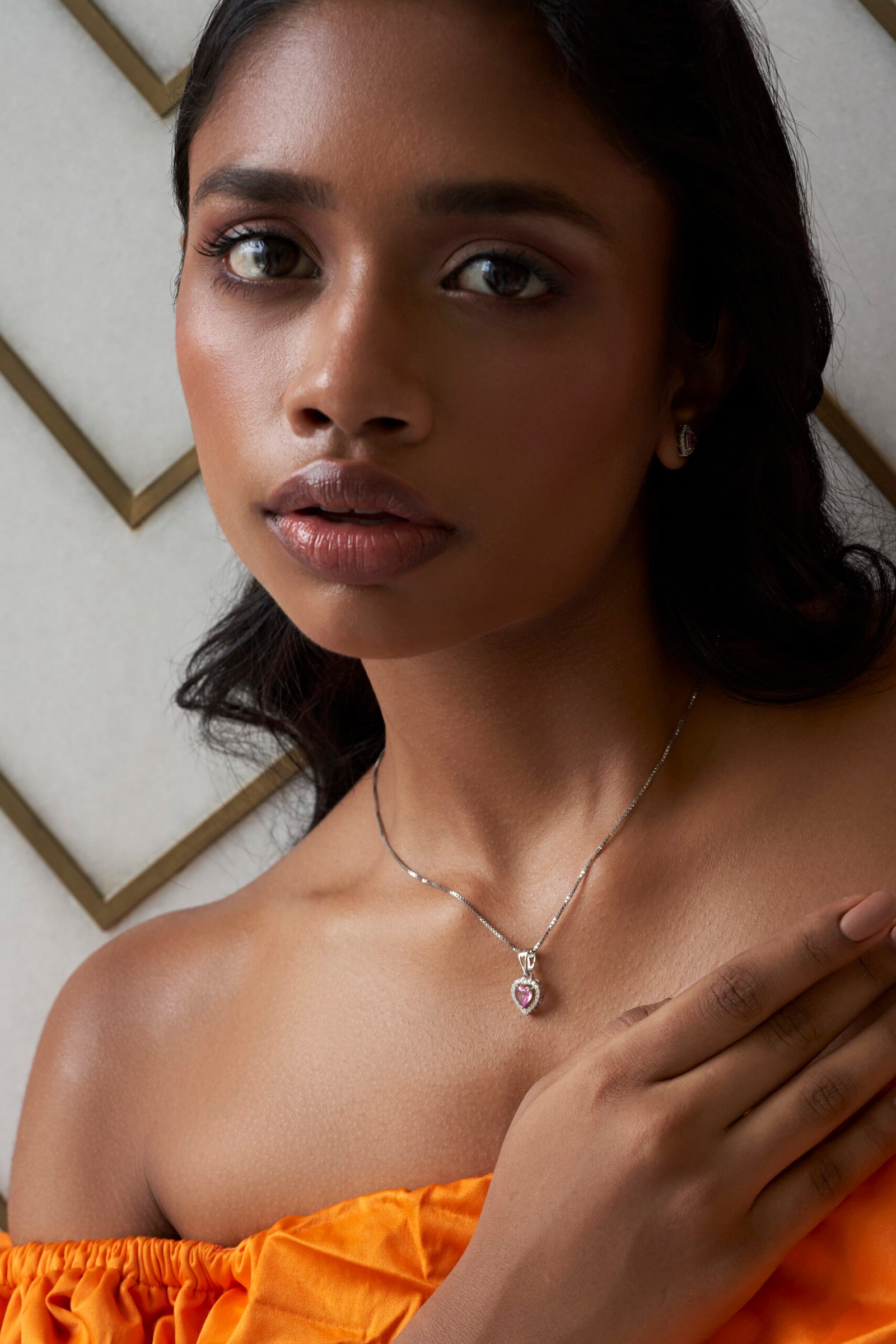 The layers are adorned with multiple small, brilliant-cut and geometric-cut Natural Diamonds, meticulously set as individual station pendants. These floating diamonds catch the light beautifully, adding constant, subtle sparkle to your neckline. The set is versatile enough for Daily Wear Luxury or evening accessorizing.